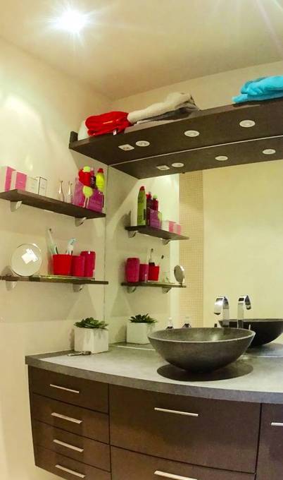 Une petite entrée permet d'accéder à une belle pièce principale composée d'une cuisine US équipée, donnant sur un espace séjour séparé de la terrasse par de larges baies vitrées offrant une vue agréable sur le jardin privé de la résidence. Au fond, un couloir sépare la chambre de la salle de bains, la buanderie et le WC séparé, . Aucun mur porteur à l'intérieur,